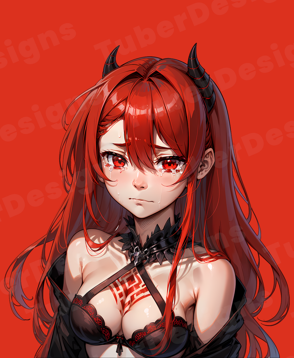 PNGTuber Crimson Sorrow Demon Girl with 5 Emotions | Ahegao premade pngtuber girl png model asset tuberdesigns for veadotube