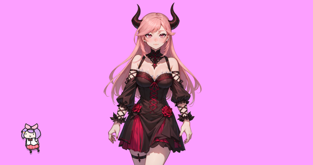 VTuber - Rose Demon Girl for vtube studio as a cute Pink, Red full body vtuber demon goth girl live2d model