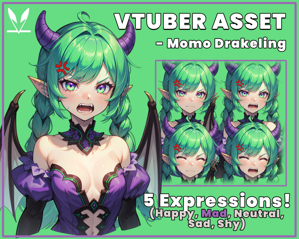 PNGTuber Momo Drakeling premade girl dragon pngtuber