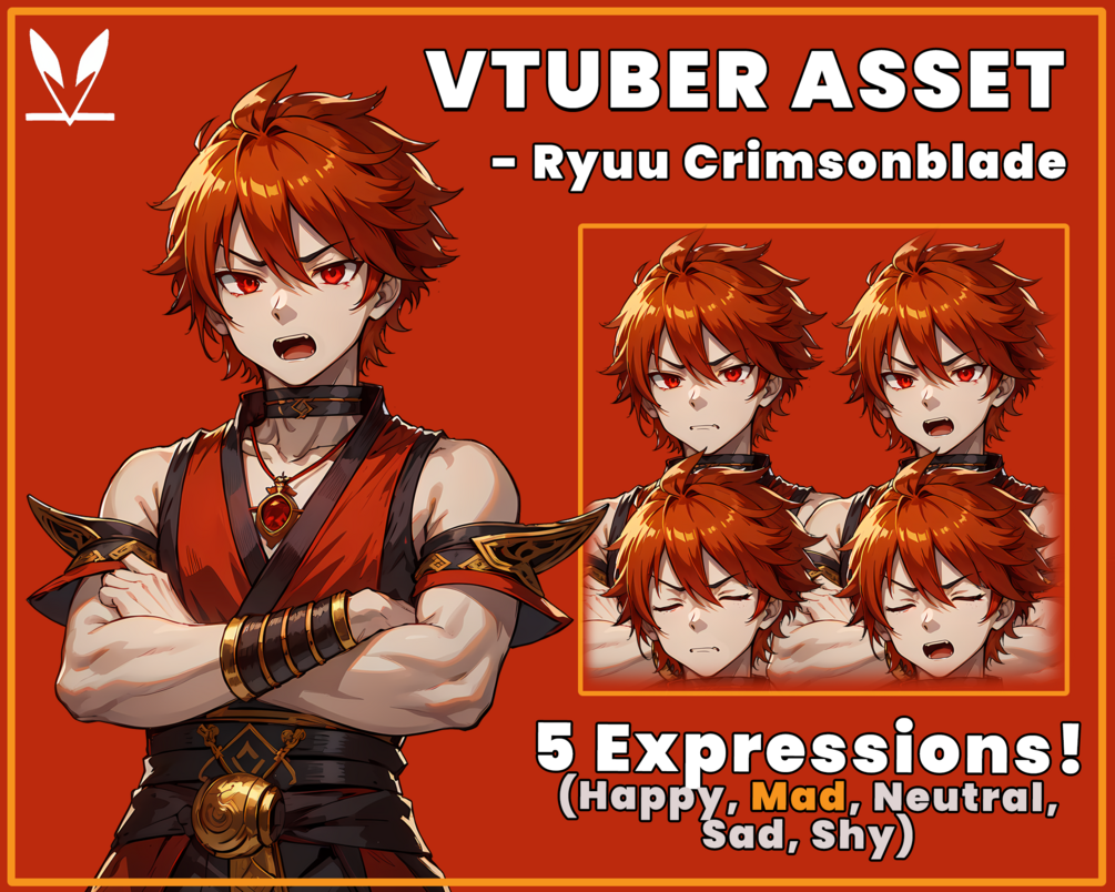 PNGTuber Ryuu Crimsonblade premade male pngtuber